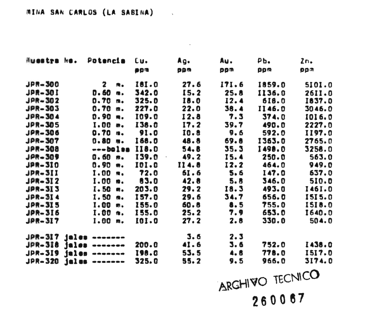 *4) 114.8 g/t Ag taken in 1975 at by SGM at San Carlos