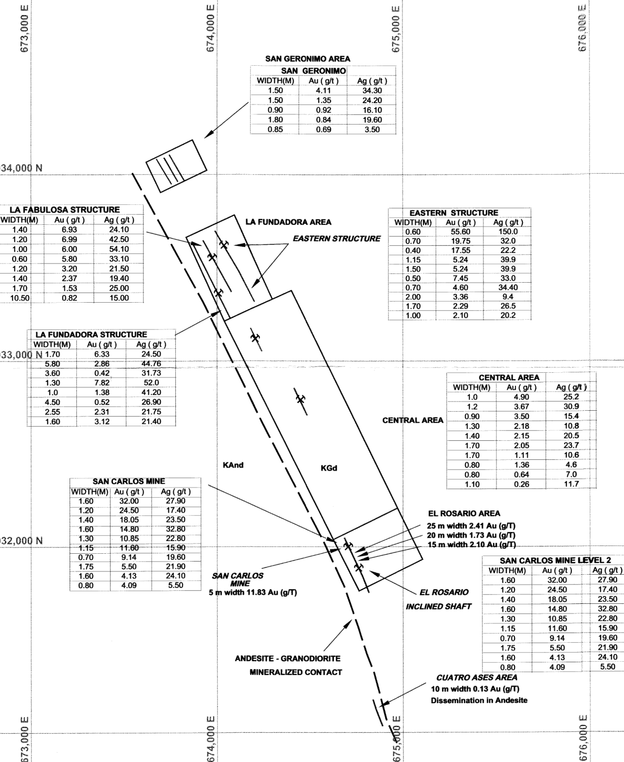 Mr Graff also commented that in the San Pedro zone, they were taking out “rezagas” (broken ore / un-mucked rock) with gold content of 95 to 100 g/t Au. However they were forced to stop due to having problems with the people of the “Cooperative Minera La Sabina” who were the owners of the mine.