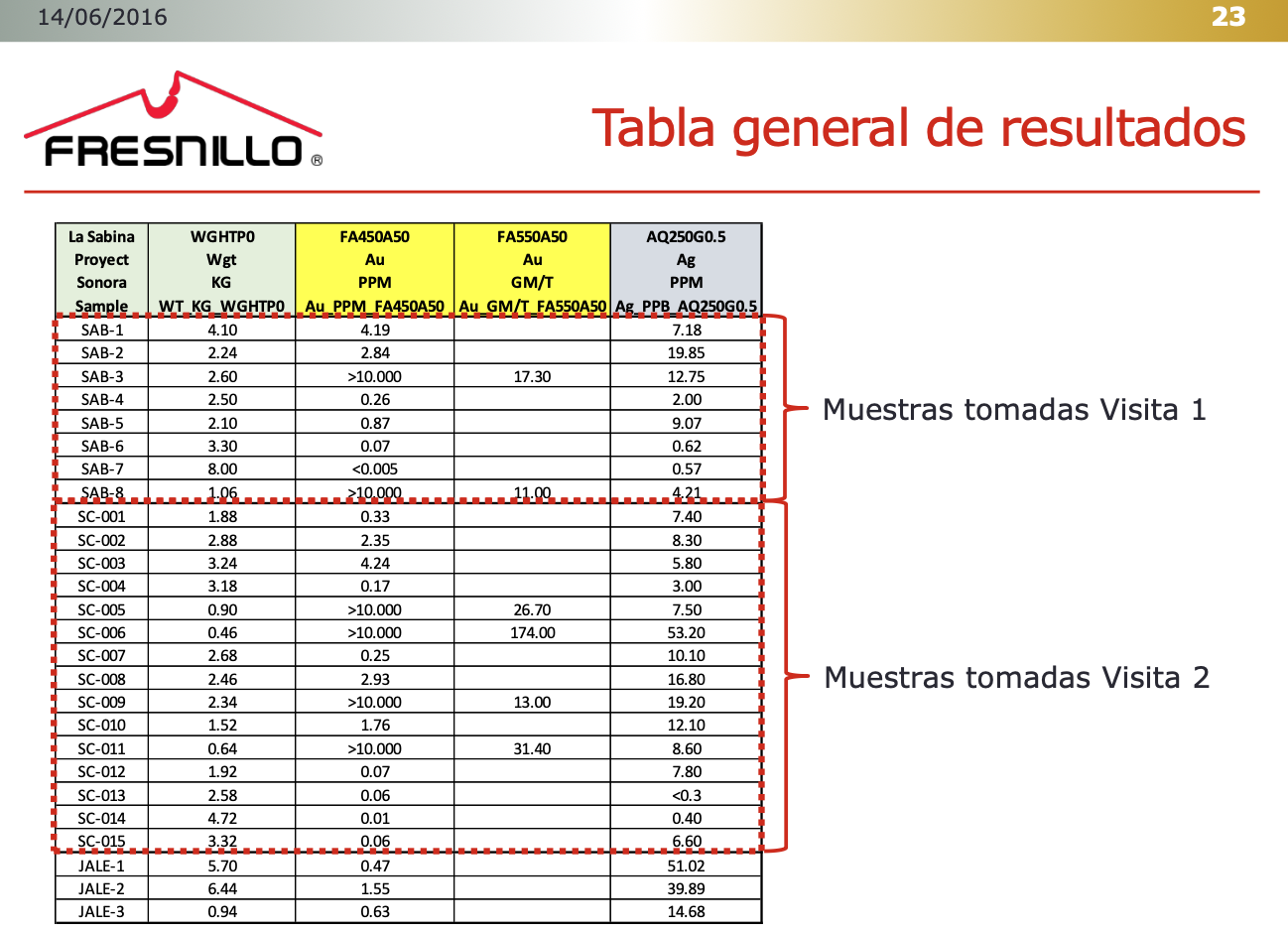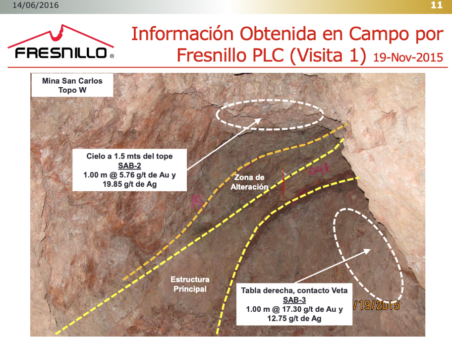 Due to this lack of information Frensillo only focused on the San Carlos area of the mine during their initial site visit in Nov 2015. Still, the results were good enough to warrant a second site visit in Jan 2016 where they found the highest grade sample in the history of the mine.
