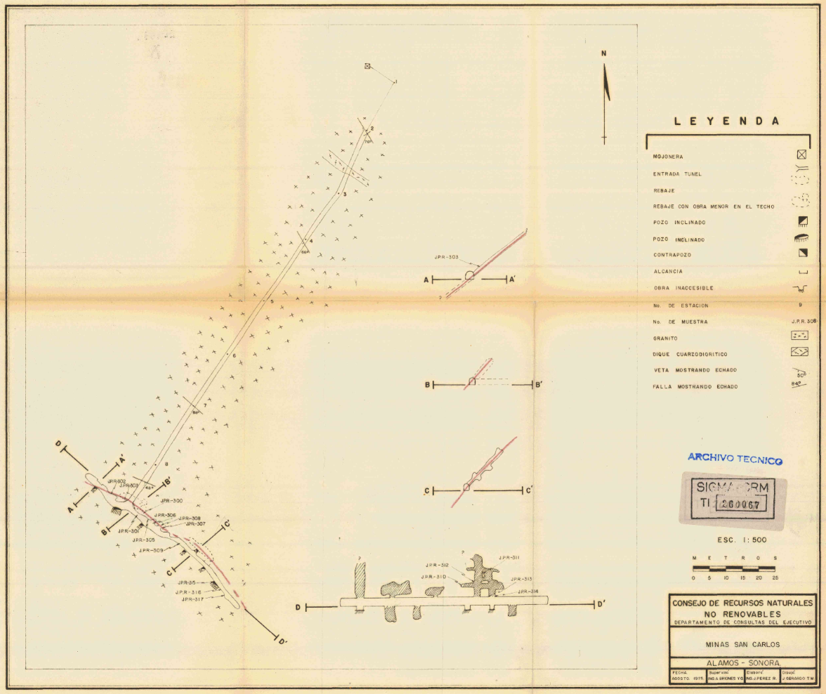 The San Carlos Area of the La Sabina Mine is known for a large tunnel built in or before 1975 which runs some 200m deep into the heart of the mountain and intersects the major vein structure. There are numerous workings from the old timers in this area.
